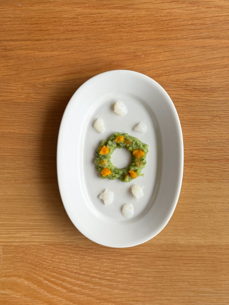 写真は、ほうれん草ペーストを使ったジェノベーゼ風ソースです。