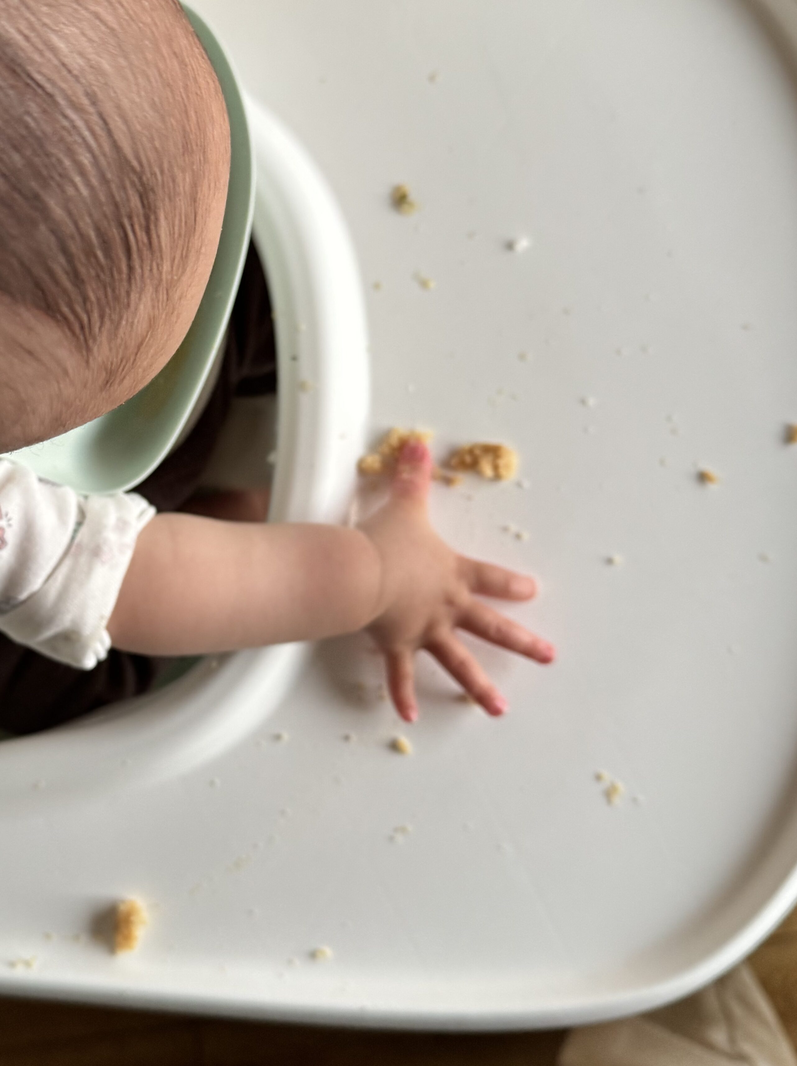 気がつくと上手にお座りでパクパク食べられるようになり、赤ちゃんの成長の速さに感心。