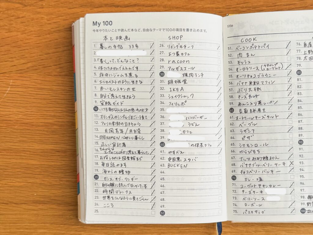 直近の5年使っているほぼ日手帳には、巻末に100個書き出せるリストページがあります。