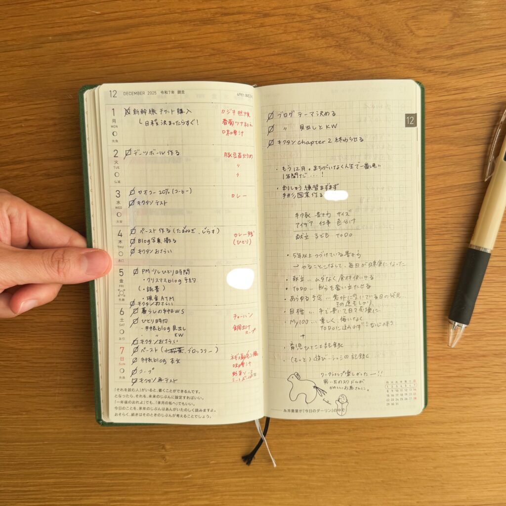 1日1ページの「HON」が好みでしたが、子どもが生まれてからは毎日手帳を書くのは難しくなったのでウィークリータイプに変えました。